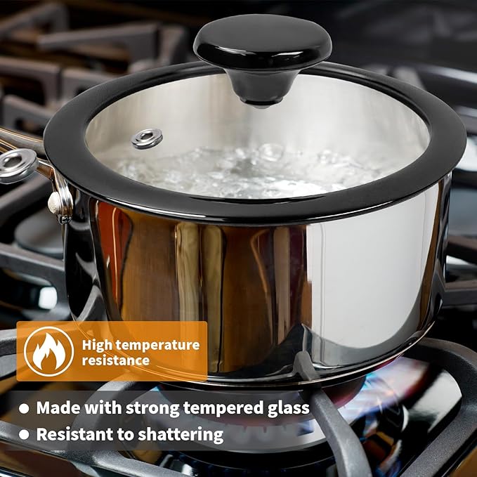 - Stainless Steel Frame: Tempered glass thickened to 4mm, resists cracking even if it falls from a height of 1.5 meters. The steel ring, exhaust hole and other metals are all food grade stainless steel, so you can use it with confidence.
