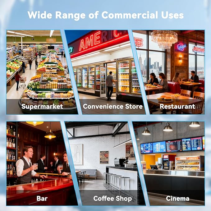 - Eye-Catching LED Lighting and Customizable Billboard: Enhance visual appeal and attract more customers with built-in LED lighting and a removable billboard lightbox. Designed to make your beverages look irresistibly vibrant, this commercial beverage cooler helps boost impulse purchases and elevate your store’s ambiance