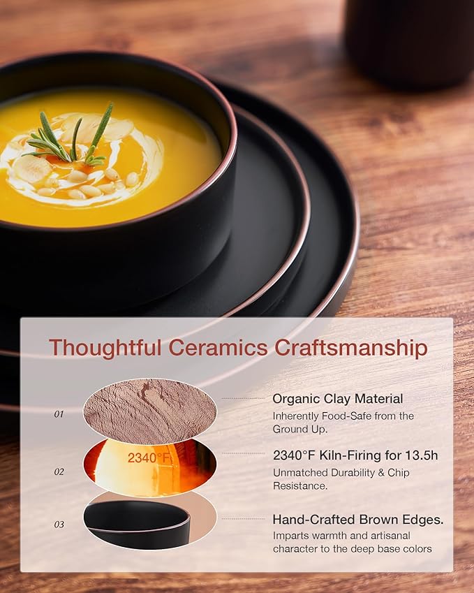 - HAND-PAINTED EDGES IN WARM TONES: Each piece features unique hand-painted edges, adding warmth and handcrafted appeal to its deep matte finish.