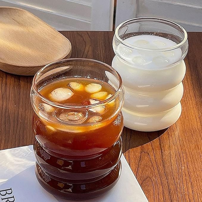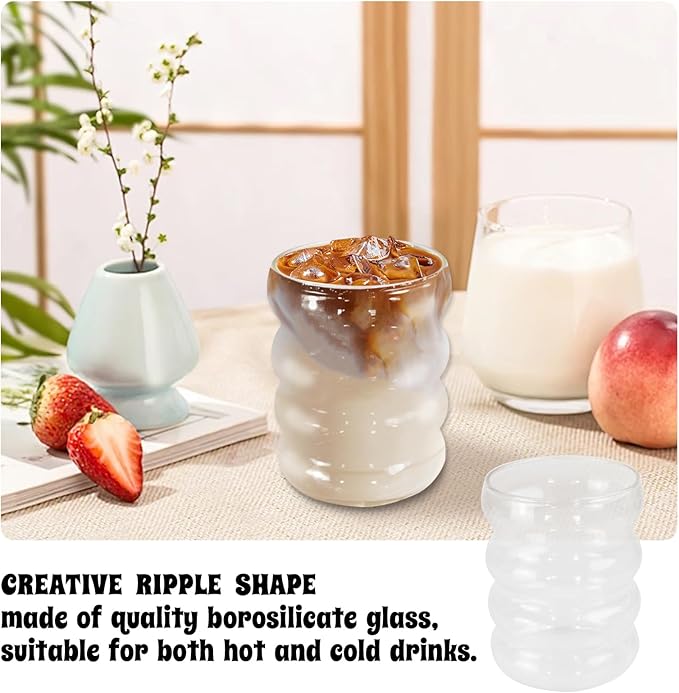 Ribbed Glass Cup 10 Oz Vintage Drinking Glassware Creative Small Ripple Glasses for Iced Coffee Juice Beverage Milk Cocktail Cute Wavy Glass Cups