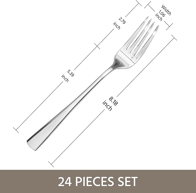 - 24 Piece Fork Set: Each dinner fork measures 8.18 inches in length, offering high-quality experience at an affordable price. With better cost performance than similar metal forks, it great meets daily family dining needs.