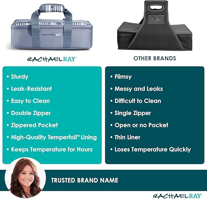 Rachael Ray Lasagna Lugger, Thermal Insulated Casserole Carrier for Hot or Cold Food, Lugger Tote for Potluck, Parties, Picnic, and Cookouts, Fits 9" x 13" Baking Dish