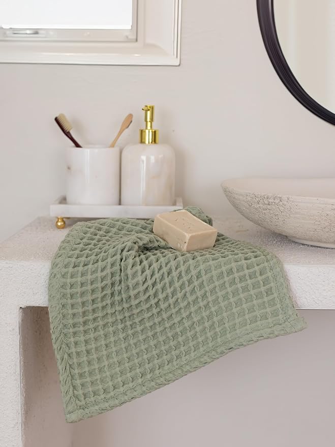 - PREMIUM WAFFLE WEAVE: The distinctive waffle weaving technique enhances breathability, allowing these towels to dry rapidly and remain fresh, even in humid environments. This unique texture also contributes to their decorative and airy feel, adding a touch of modern elegance to your bathroom decor.