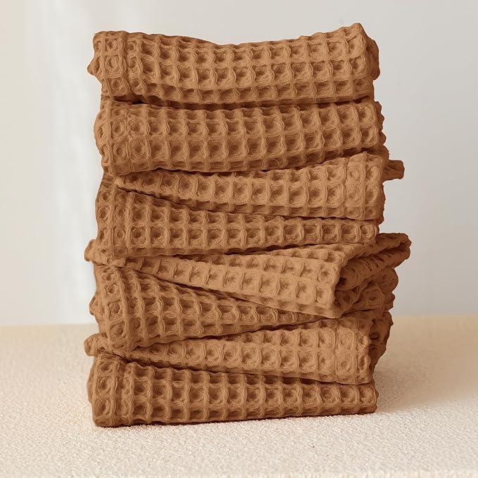 Waffle Washcloths Set of 8 Caramel Brown - Premium Quality 100% Turkish Cotton Face Washcloth, Soft Makeup Towel, Shower Cloth, Kitchen Towel (Caramel, Set of 8 Washcloths)