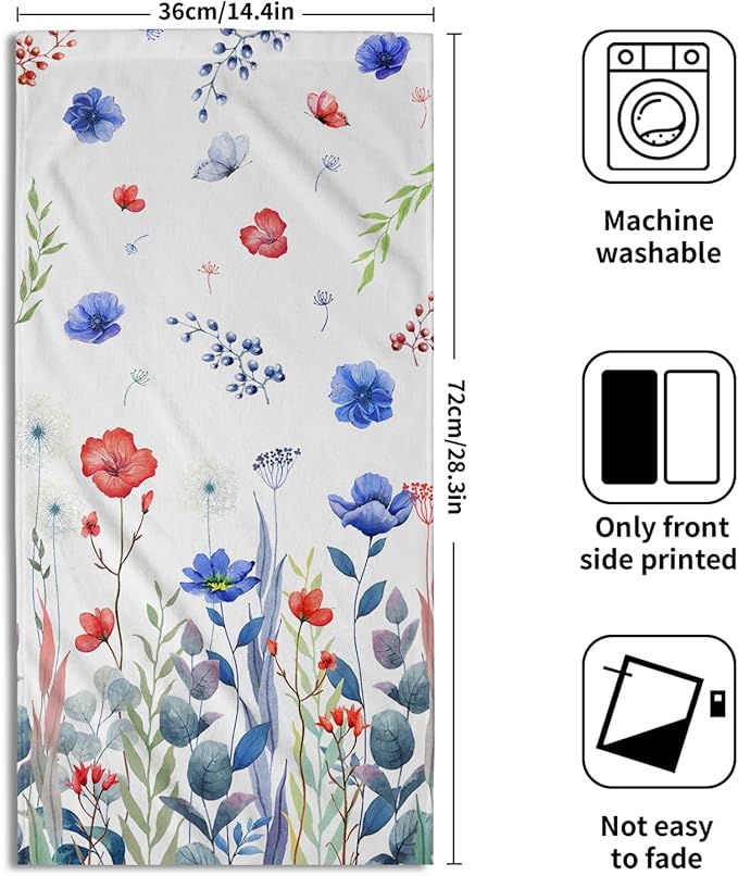 - 【Durable Materials】The patriotic red blue floral bathroom towels made of high quality soft polyester microfiber material, which are durable, light, breathable, sweat-absorbent and refreshing. No velvet, soft and skin-friendly, easy to carry.