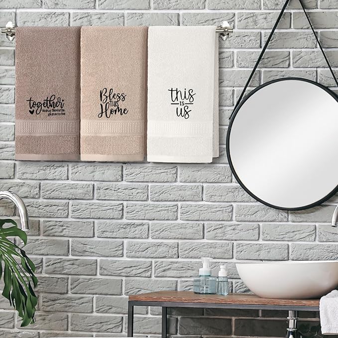 - Embroidery Design: each hand towel's edge is cleverly adorned with inspirational words: "this is us, bless this home, together is our favorite place to be"; These words are delicately embroidered, showcasing refinement and beauty with every stitch, not only enhancing the towel's artistic appeal but also imparting a unique emotional value