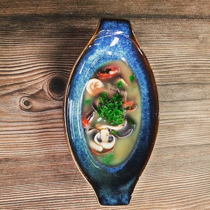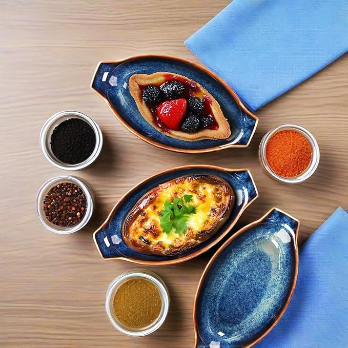 - Traditional Design: Add a rustic flair to your dinner table. Crafted from durable, odor and stain resistant ceramic in glossy Starry Blue reactive glaze. Suitable for one person to make baked dishes with more flavors