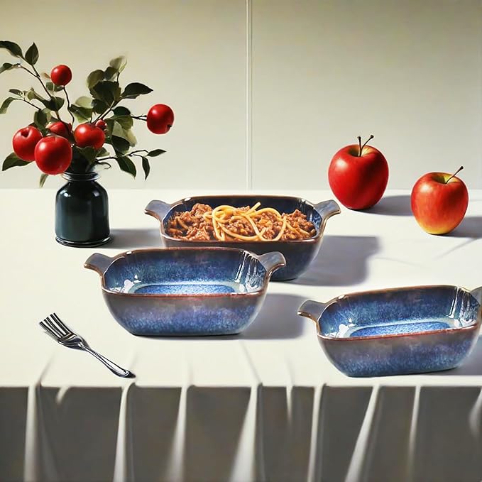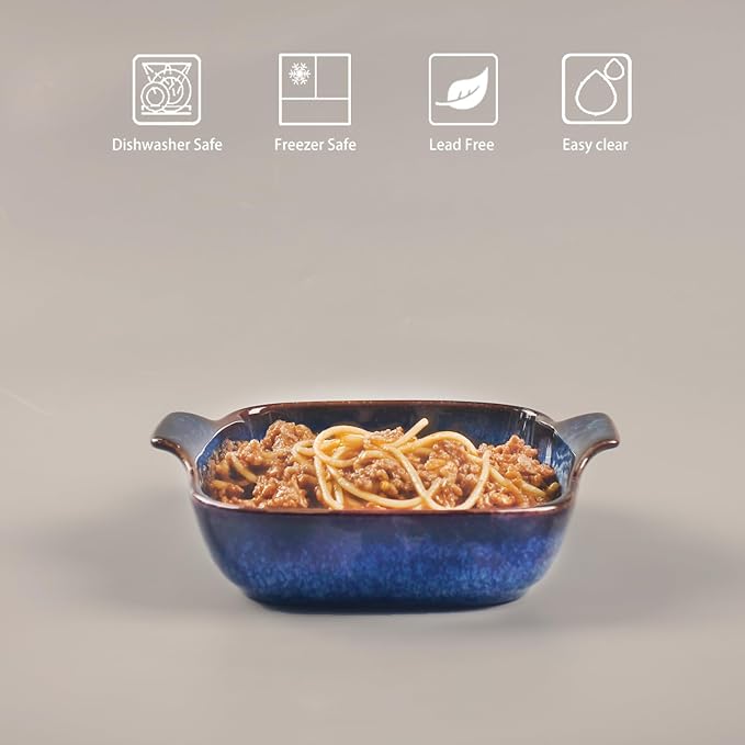 - Traditional Design: Add a rustic flair to your dinner table. Crafted from durable, odor and stain resistant ceramic in glossy Starry Blue reactive glaze. Suitable for one person to make baked dishes with more flavors