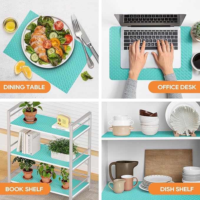 - 🎄【MULTIFUNCTIONAL LINER】🎄The shelf liners can not only be used as a kitchen liner to ensure the clean of the home, but also as a refrigerator mat to keep food and fruits fresh. Various Usage: Cabinet mat, drawer mat, desk mat, table mat, shelf liner, countertop.