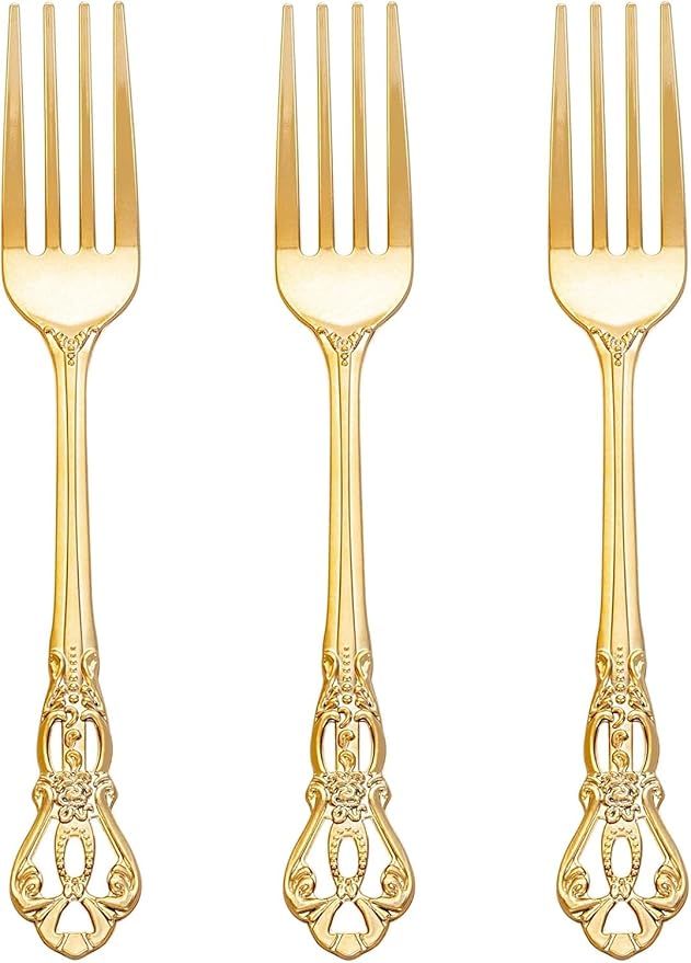 - Premium Gold Plastic Forks Disposable: Our gold plastic forks resist bending, providing stability. These gold forks disposable feature a luxurious metallic finish perfect for any occasion