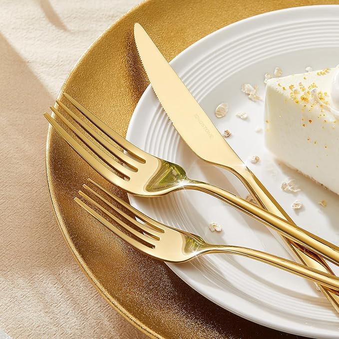 KINGSTONE Silverware Set, 40-Piece Flatware Set Cutlery Set Premium 18/10 Stainless Steel, Tableware Include Forks Knives Spoons for Home Kitchen Restaurant Wedding, Dishwasher Safe, Gold
