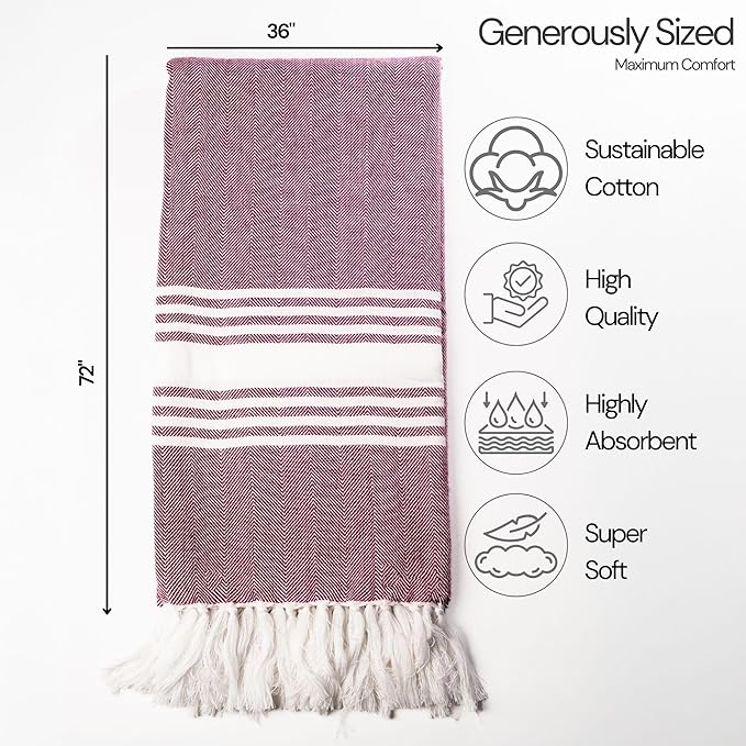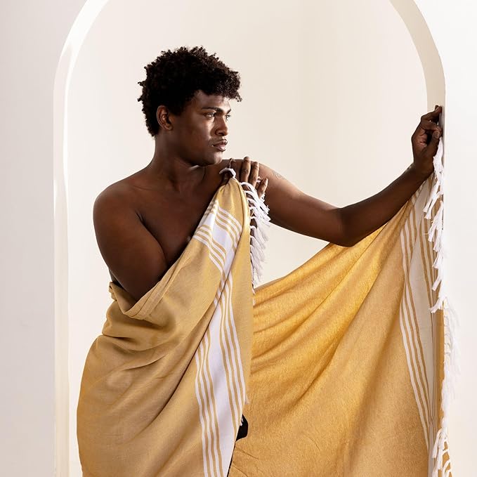 - Functional Design: No more sandy beach towels – simply shake off the sand and you're good to go! Our quick dry bath towels boast exceptional absorbency, supreme softness, rapid drying, and lightweight construction, ensuring ultimate comfort and convenience. Each turkish towel undergoes prewashing and is inherently sand-resistant, guaranteeing a hassle-free beach outing. Their distinctive stripe design adorned with tassels make them an ideal boho bathroom accessory.