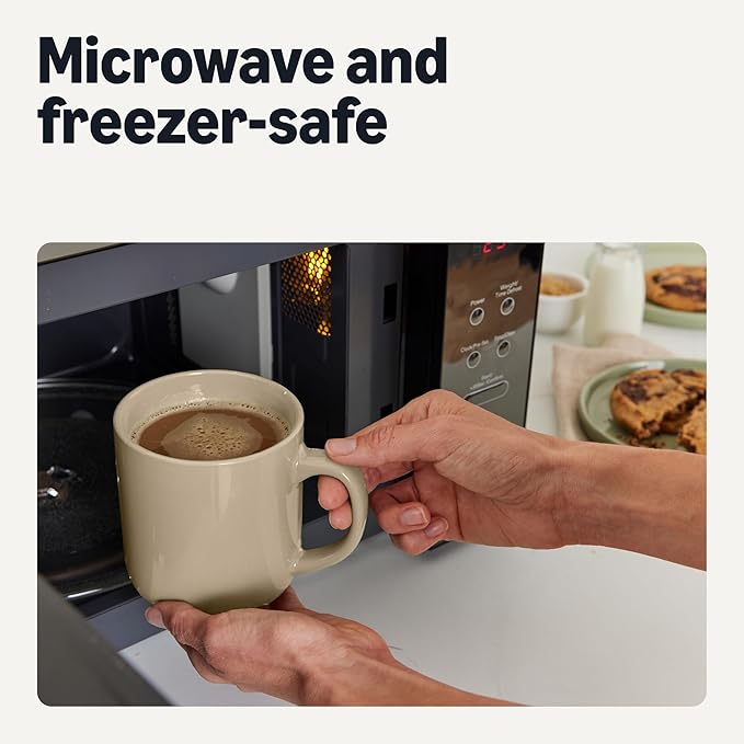 Amazon Basics Ceramic Coffee Mugs, Ceramic 4-Piece Set, 16 oz, Microwave and Dishwasher-Safe, Linen Gray