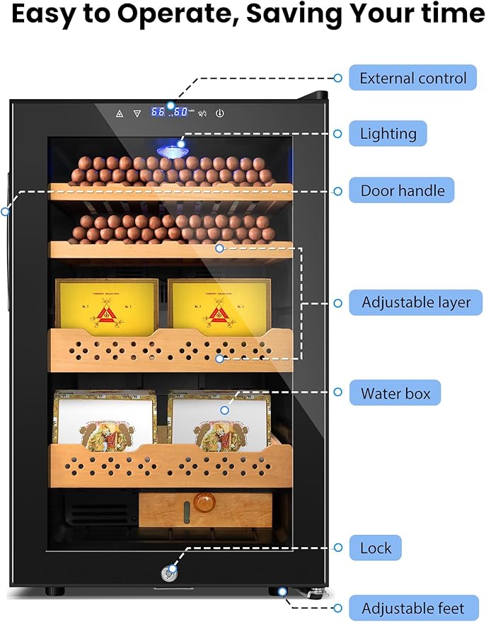 - 【Accurate Data Display】 - Upgraded intelligent chip that can better sense internal temperature and humidity in the form of data. Adding double-layer glass doors allows you to view your treasure at any time.