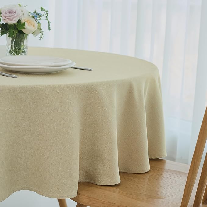 maxmill Round Linen Textured Tablecloth Spill-Proof Stainproof Wrinkle Free Washable Fabric Table Cloth for Circular Table Cover, Dining Room Buffet Banquet Parties Holiday Dinner, 70 Inch Beige