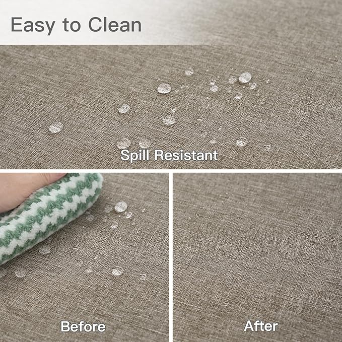 - **Easy to Care: **These tablecloths are spill-proof, water resistant. All liquids bead up for easy cleaning. Machine wash in cold water and tumble dry. Little or no ironing required. DO NOT BLEACH.