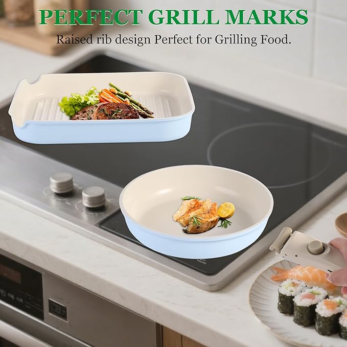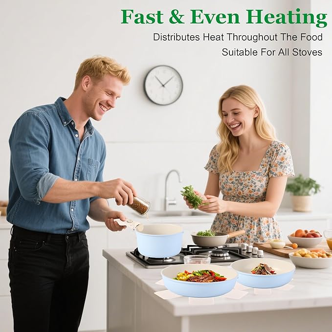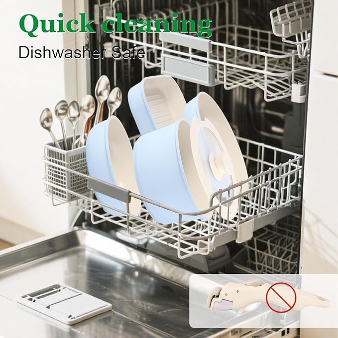 12 PCS Kitchen Cookware Sets with Detachable Handle,Pots and Pans Sets Non Stick, Induction Pan Set for RV Cookware,Oven Safe, PFOA Free(Blue)
