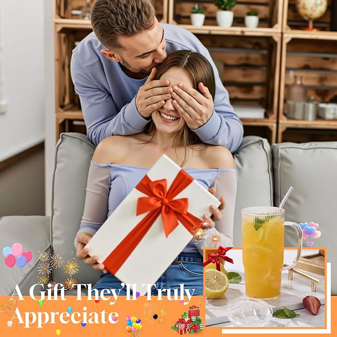 - RIBBED DESIGN WITH HANDLE -- Designed with a timeless vertical stripe texture and an easy-grip handle, this glass tumbler with straw and lid adds both beauty and function — no more discomfort from hot or cold drinks