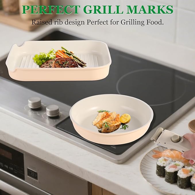 12 PCS Kitchen Cookware Set with Detachable Handle, Pots and Pans Sets Non Stick, Induction Pan Set for RV Cookware,Oven Safe, PFOA Free(Hazelnut)