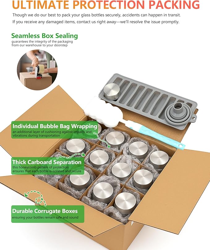 - SAVE MONEY WITH THIS VALUE PACK: Juicing Kit Bundle includes : 8 pack clear 10.5 oz glass milk bottles with airtight lids, a bottle cleaning brush for easy hand washing, a funnel helps you pour liquids inside the glass juice containers, an ice tray makes narrow ice cubes for adding ice easily, extra 1pc stainless steel airtight lids to ensure that the glass smoothie bottles always remain sealed. Get our juicing jars in bulk packs as gift for your whole family and friends.