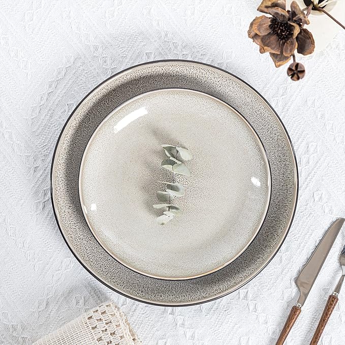 - Premium High-Fired Ceramic: Crafted with 2300℉ kiln-fired technology for superior chip & scratch resistance. Features a glossy, non-porous surface that repels stains and cleans effortlessly, ideal for busy households and holiday feasts. Note: Owing to the reactivity of glazes during the firing process, resulting in subtle variations on the surface of each tableware.