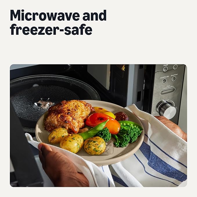 - GLAZED STONEWARE: Made of stoneware with a gloss glaze finish; microwave-safe, freezer-safe, and stain-resistant