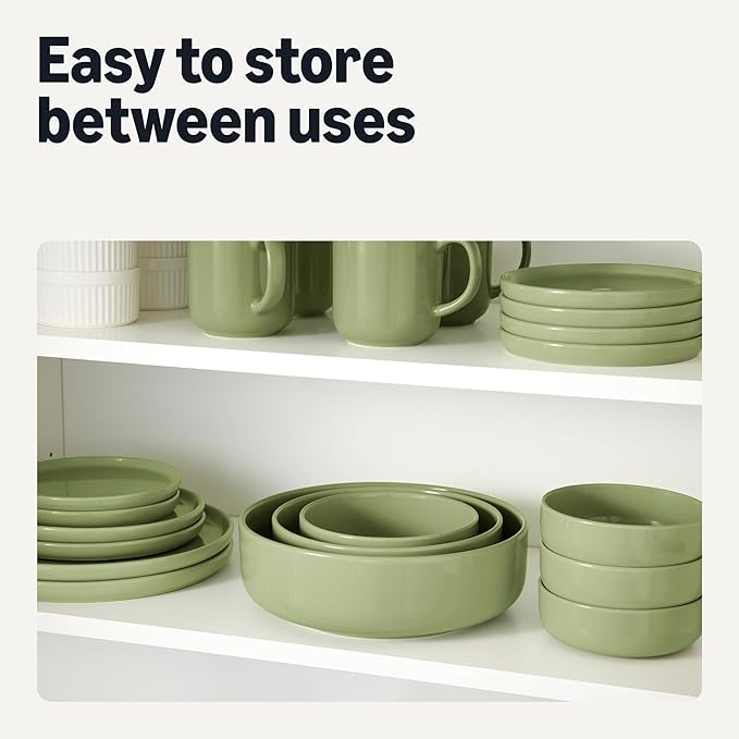 Amazon Basics Glazed Stoneware Dinner Plates, Ceramic 4-Piece Set, Microwave and Dishwasher-Safe, 10.5 in., Olive