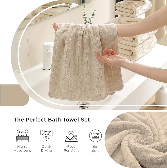 - BETTER WATER ABSORPTION:600 GSM towel set are ultra-absorbent and fast drying,feel soft and cozy.Soft warm hotel plush towels giving you a comfy experience after bathing,and towels can quickly absorb the moisture on your body,drying your hands or cleaning your face.Perfect durable microfiber ensure optimum softness,fluffiness and wonderful absorbency.