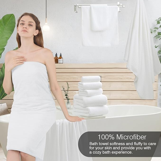 - FAMILY MULTIFUNCTIONAL BATH TOWEL:High quality fabric shower towels,skin-friendly,with strong moisture absorption,breathable,children can also use it at ease.Oversize bathroom towels is thick and large,can completely wrap your body.You will enjoy the experience of softness,moisture absorption,luxury,lightness.Perfect for poolside,bathroom,Beach,salon,college dorm room essentials,spa,hotels or gym use.