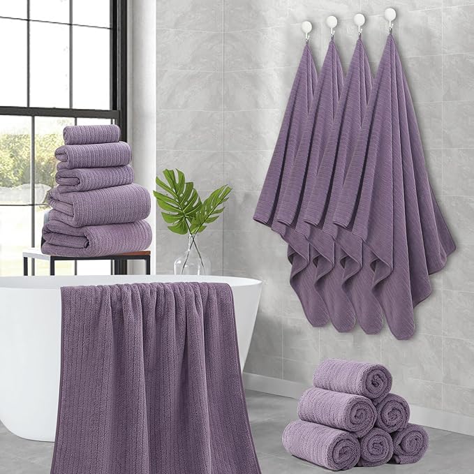 - SOFT TOUCH AND DURABLE:18 pack towel set have a reinforced double stitched hem and natural weave guarantees durability and strength. luxury towel set are made up of 100% microfiber and soft fleece plush material which allows them to be extremely absorbent,soft and fluffy.The soft touch of these luxurious and remarkably plush towels allows you to feel spa grandeur in the comfort of your own home.