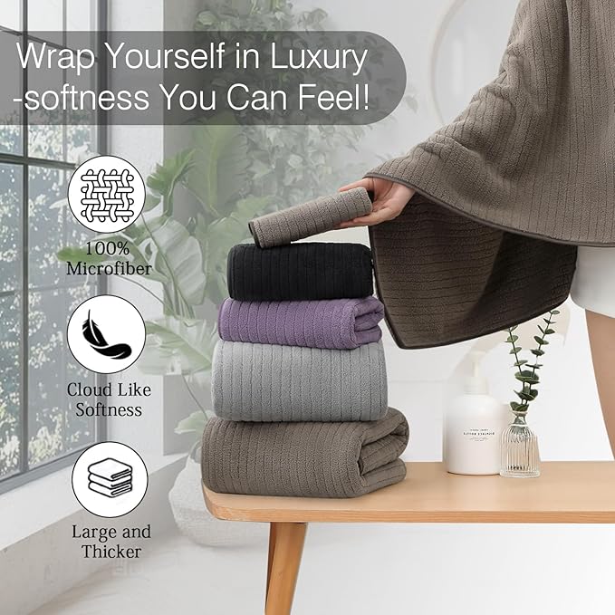 - FAMILY MULTIFUNCTIONAL BATH TOWEL:High quality fabric shower towels,skin-friendly,with strong moisture absorption,breathable,children can also use it at ease.Oversize bathroom towels is thick and large,can completely wrap your body.You will enjoy the experience of softness,moisture absorption,luxury,lightness.Perfect for poolside,bathroom,Beach,salon,college dorm room essentials,spa,hotels or gym use.