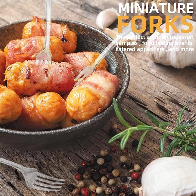 - 【4-inch Clear Mini Forks】: These 4-inch mini forks are practically tailor-made for small desserts! Whether you're eating pudding, cheescakes or fruits cups, these tiny, sleek clear forks are super easy to use. Compact packaging, space-saving, and easy to store; perfect for picnics and parties, always ready for snacks, convenient and practical.