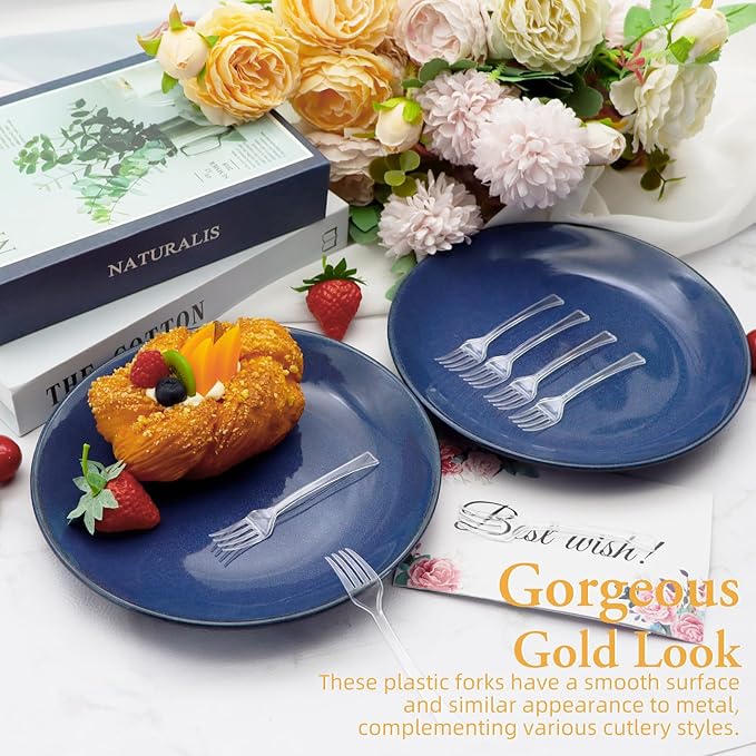 - 【The Perfect Dessert Companion】: When these crystal-clear dessert forks meet cupcakes, macarons, fruit ... ordinary sweets instantly transform into an elegant high tea spread! Whether it's a birthday party, wedding reception, or family dinner, these mini forks elevate your party to a more simple and beautiful.