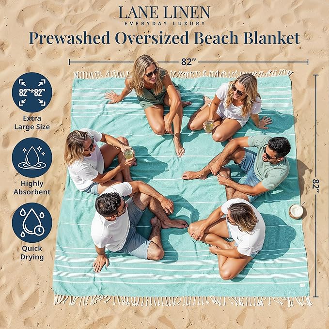 LANE LINEN Beach Towels Oversized - Beach Supplies, Turkish Beach Blanket with Lightweight Sand-Free Feel – 82"x82", Perfect for Poolside Lounging & Park Picnics – Hunter Green