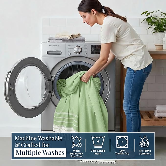 - Take Comfort in Easy Care – Machine washable and quick-drying, this blanket is pre-washed to prevent shrinkage and built to last. Its durable weave ensures it stays soft, strong, and fresh through many washes, ready for countless family road-trip stops with an extra large beach towel and Turkish beach blanket close by