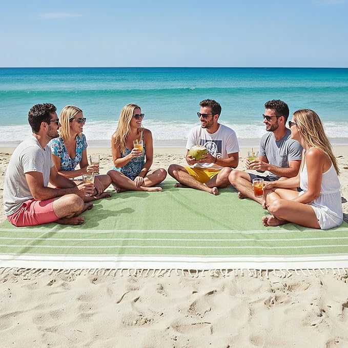 - Relax with Oversized Comfort – Measuring 82"x82", this Jade Lime large beach blanket creates a spacious lounging area for families, fitting two adults and kids with ease. Perfect for unwinding on holiday weekends, sharing picnic blankets at splash-pad lawns, or cozying up near a backyard firepit, it offers comfort and room to enjoy together as an outdoor blanket.