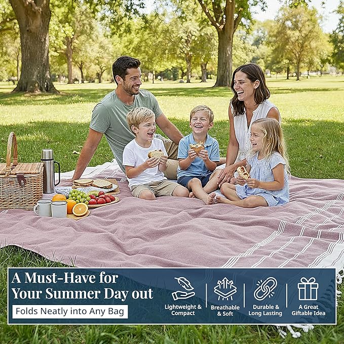 LANE LINEN Picnic Mat for Beach Vacation Essentials - Large Outdoor Blanket,Quick Dry and Pre-Washed, Soft Comfort, Perfect for Family Vacations, Park Relaxation, Sand Lounge – Wistful Mauve