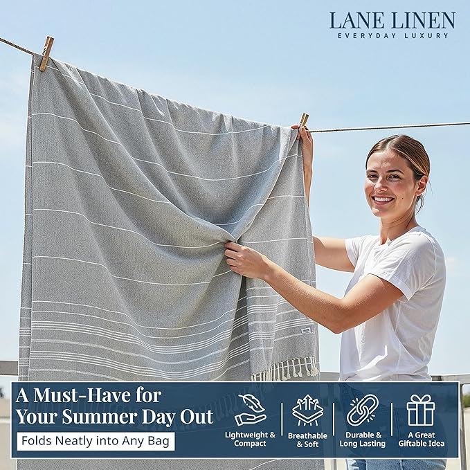 LANE LINEN Oversized Beach Towel - Large Outdoor Blanket with Soft Pre-Washed Finish – 82"x82", Ideal for Coastal Getaways, Backyard Lounging, Beach Party or Seaside Adventures – Grey