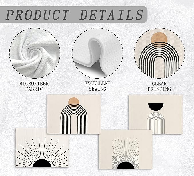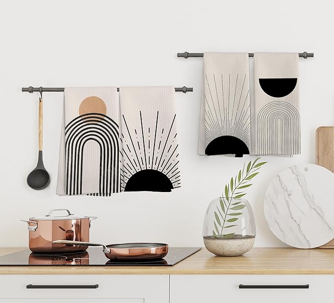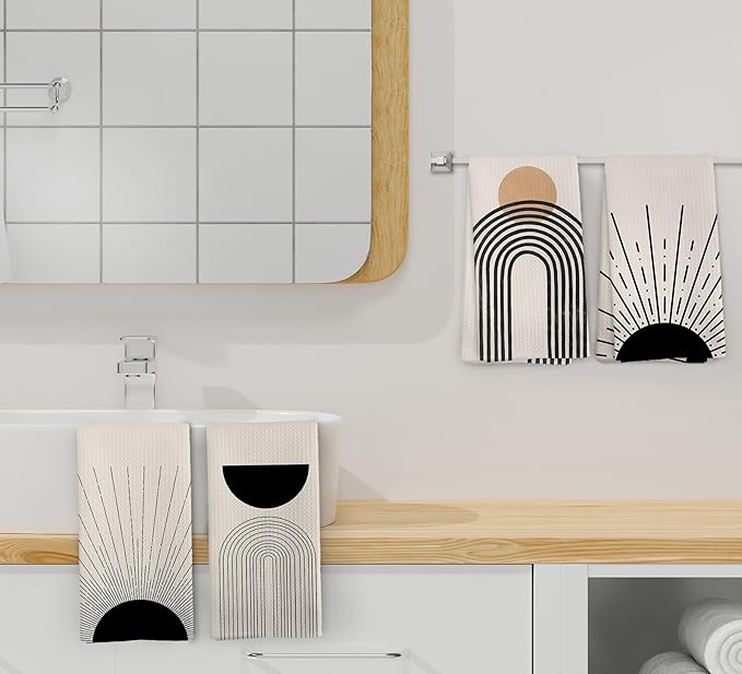 Boho Abstract Kitchen Towels and Dishcloths Set of 4, Boho Hand Towels, Mid Century Modern Abstract Minimalist Sunshine Drying Cloth Hand Dish Tea Towel for Bathroom Kitchen, 16x24 Inches