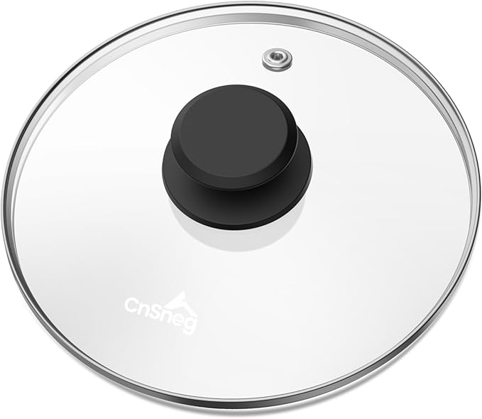 - 8 INCH PAN LIDS: Crafted with HD tempered glass, leak proof SS304 steam vent and heat resistant bakelite knob. The lid can withstand temperatures up to 450°F (230°C), safe for oven. The CnSneg glass lid fits most 8 inch diameter cookware of pots, cast iron skillets, wok, saucepan, and frying pans. Dishwasher safe for effortless cleaning.