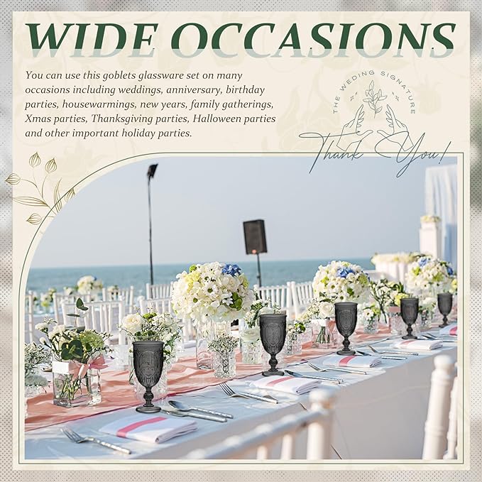 - Wide Occasions: you can use this plastic goblets set on many occasions including weddings, anniversary, birthday parties, housewarmings, new years, family gatherings, Xmas parties, Thanksgiving parties, Halloween parties and other important holiday parties