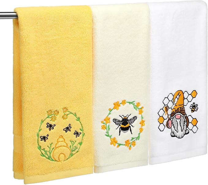 - Complete Package of 3 Summer Towels: enhance your home with the bee hand towels bathroom set, offered in a package of 3; This complete set provides multiple styling options and a cohesive look, allowing you to experiment with coordinated decor themes across different rooms