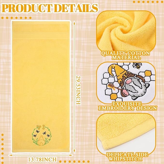 - Embroidery That Captivates: sunflower bee kitchen towels are adorned with intricate bee themed embroidery, featuring 3 unique designs and elegant appliques that breathe life into your summer living space; These artistic details make each towel not just a utility item, but a testament to skilled craftsmanship