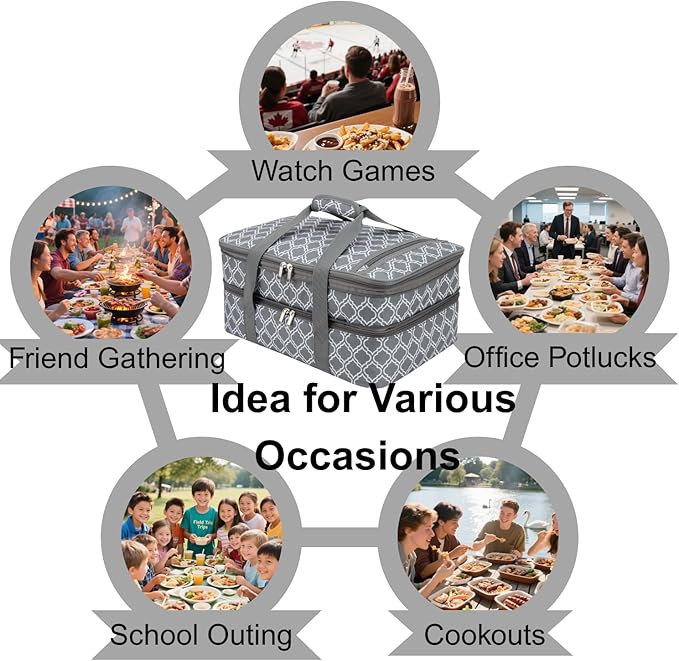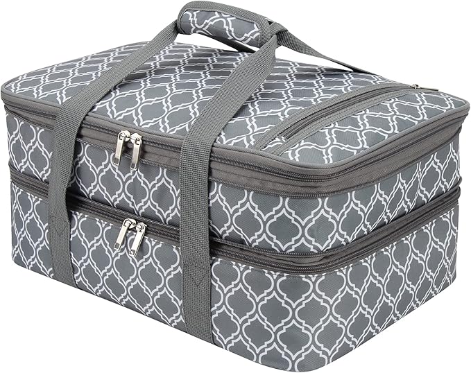 Insulated Casserole Carrier Bag - Portable Thermal Food Tote Carrying Case Bag for 9x13/11x15 Inch Pans - Keep Hot/Cold 4+ Hours - Double Decker for Festival Potlucks, Camping or Outdoor Events