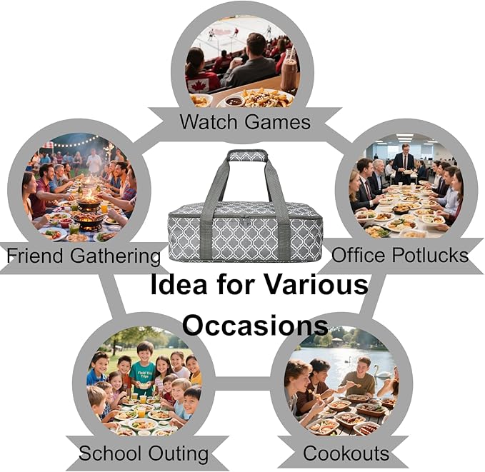 Insulated Casserole Carrier Bag - Portable Reusable Food Transport Tote Bag Fits 9x13" Lasagna Baking Dish Pan to Keep Food Hot/Cold for Gathering/Potluck Parties/Cookout/Camping/Offices-Silver Gray