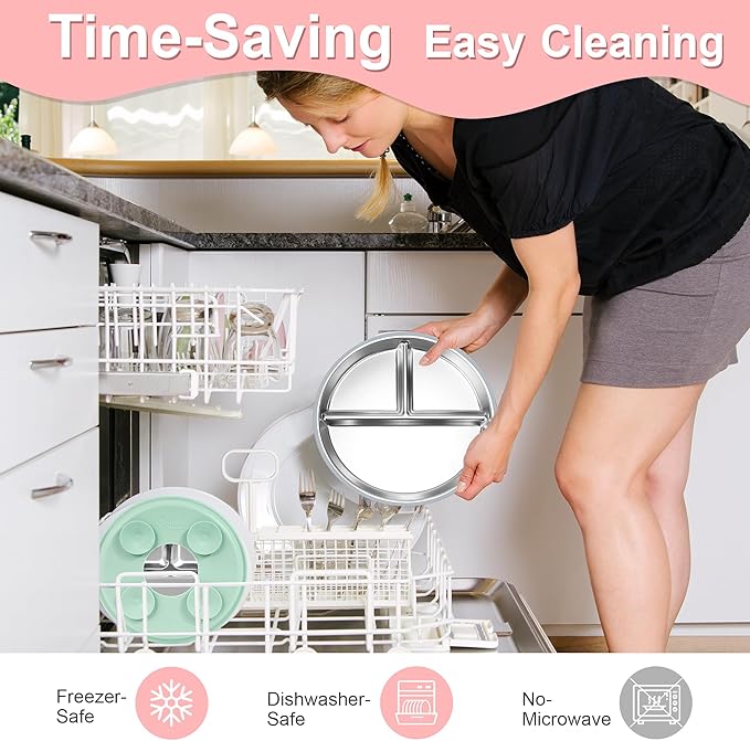 - Effortless Cleaning for Busy Parents: Dishwasher safe and boil-safe for quick sterilization. The silicone sleeve of the plate removes easily for a thorough cleaning