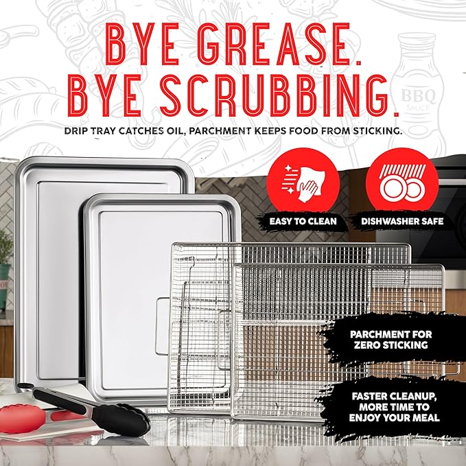 - Large Capacity – Perfect for Families & Entertaining: Our 14" x 10" air fryer tray and pan fit most standard ovens, giving you more space to cook multiple servings of fries, wings, vegetables, and more. Great for busy weeknights or hosting dinner guests.