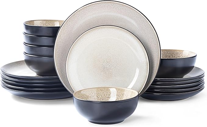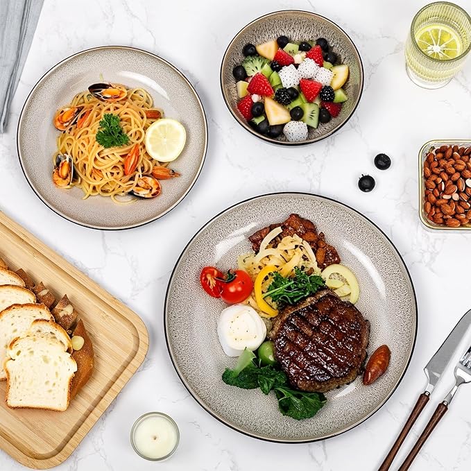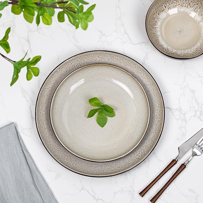 - Premium High-Fired Ceramic: Crafted with 2300℉ kiln-fired technology for superior chip & scratch resistance. Features a glossy, non-porous surface that repels stains and cleans effortlessly, ideal for busy households and holiday feasts. Note: Owing to the reactivity of glazes during the firing process, resulting in subtle variations on the surface of each tableware.
