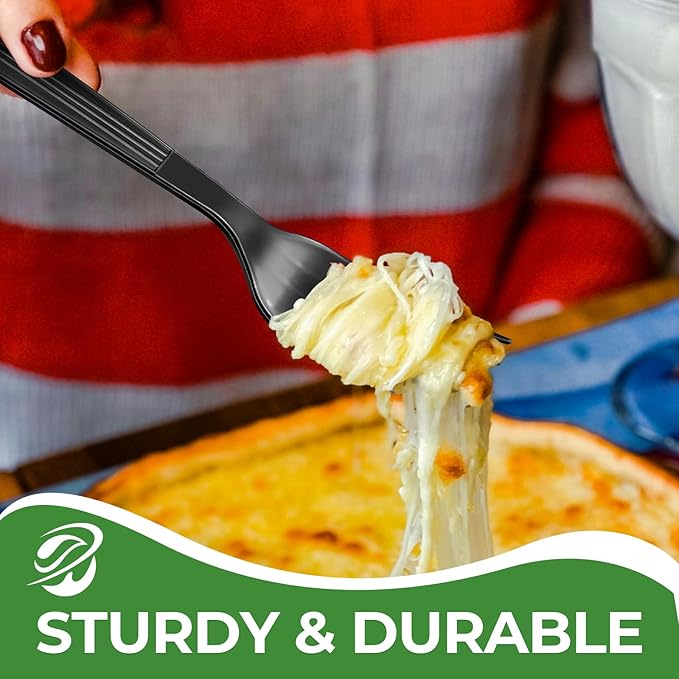 1000 Count Extra Heavy Duty Plastic Forks Black Disposable Forks Premium Bulk Plastic Forks Heavy Duty Plastic Silverware for Parties, Family Gatherings