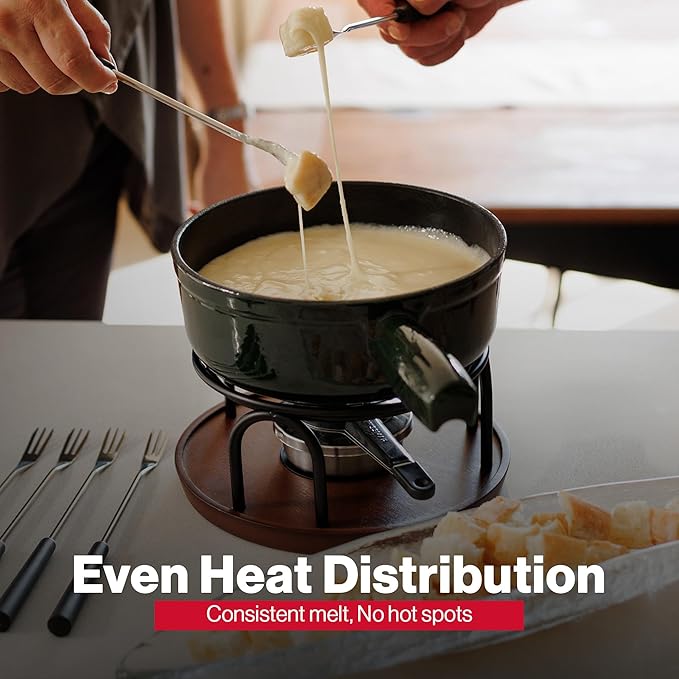 - Versatile Cheese and Chocolate Maker Fondue Set – Ideal for cheese and chocolate fondue; this multi-use fondue set is induction capable and works with all heat sources, making it perfect for both casual family meals and elegant entertaining.